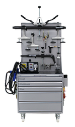 Avec son faible encombrement au sol, le poste de travail CDR1 est parfait pour tous les ateliers effectuant des réparations esthétiques sur l'aluminium et l'acier. La large gamme d'outils à code couleur est soigneusement disposée dans le poste de travail et peut tourner dans l'atelier selon les besoins.